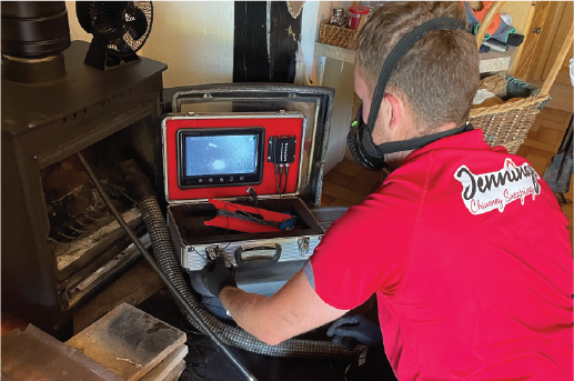 Inspection de la vidéosurveillance – Grâce à notre équipement interne de relevé vidéo pour les conduits, nous pouvons voir l’intérieur de votre cheminée, évaluer son état, le niveau d’accumulation de suie/créosote et détecter d’éventuels blocages éventuellement.